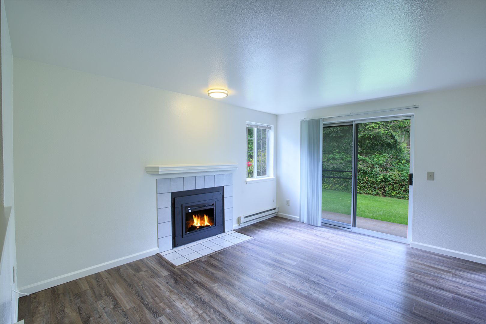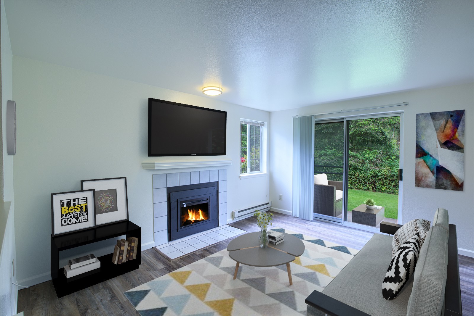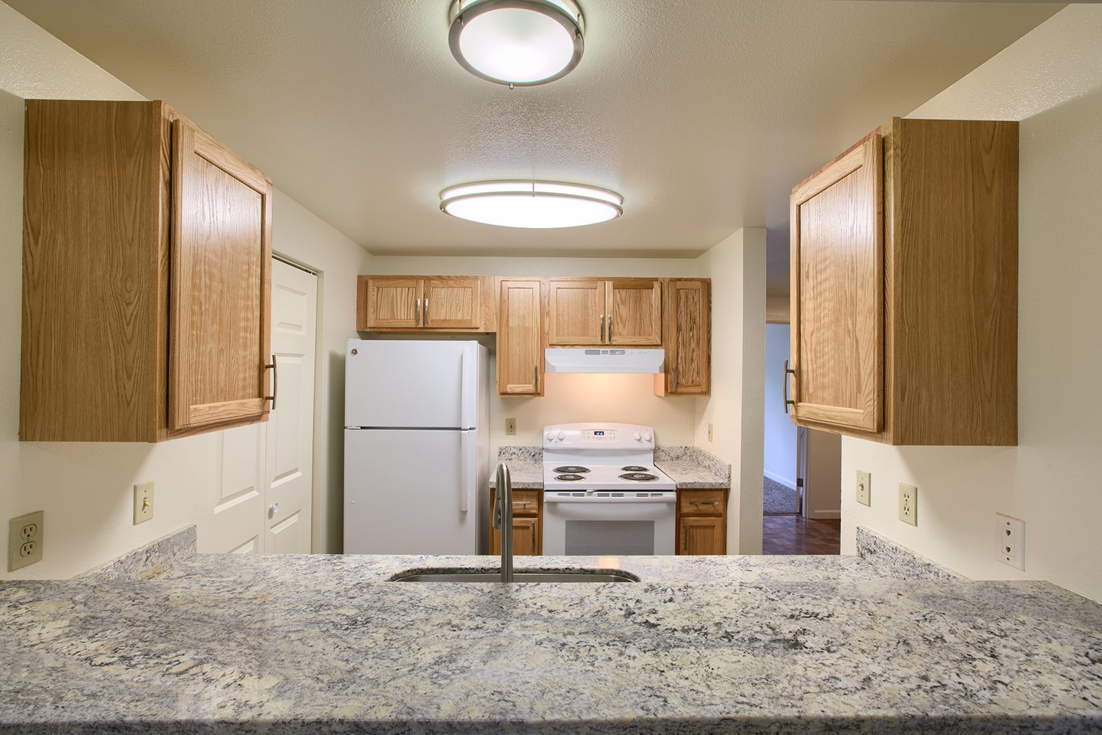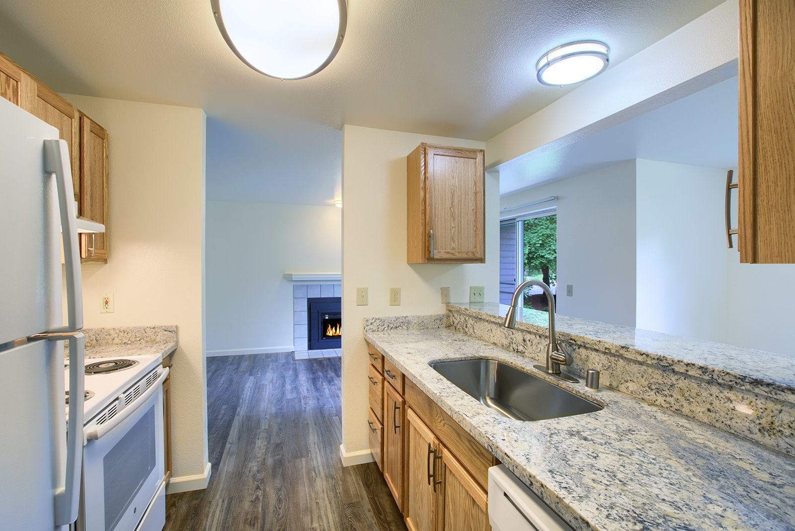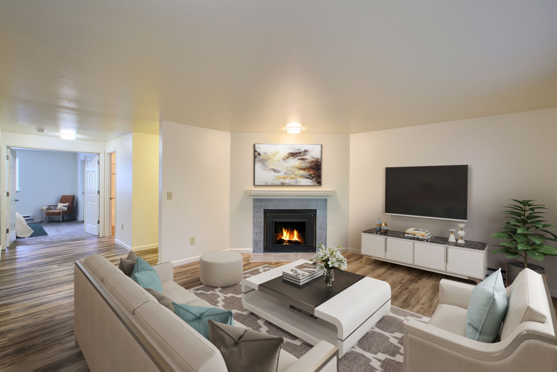 Water, sewer and garbage for this apartment is charged at a flat rate of ONLY $51! And NO ADMIN FEES. Your 1 bedroom/1 bath apartment home comes fully equipped with a stove, refrigerator, dishwasher PLUS a large washer and dryer. Delight in wonderful upgrades to your kitchen and bathroom like soft-close cabinetry and granite countertops. Pass through your wide main entryway that opens to your comfortable living space complete with luxury vinyl plank flooring, a fireplace and dining room with breakfast bar. Enjoy outdoor living on your private patio or deck. Double entry doors open to your spacious bedroom with a walk-in closet. At the end of your long day don’t worry about parking, you’ll have one assigned, covered parking space to pull into, available to you FREE of charge.